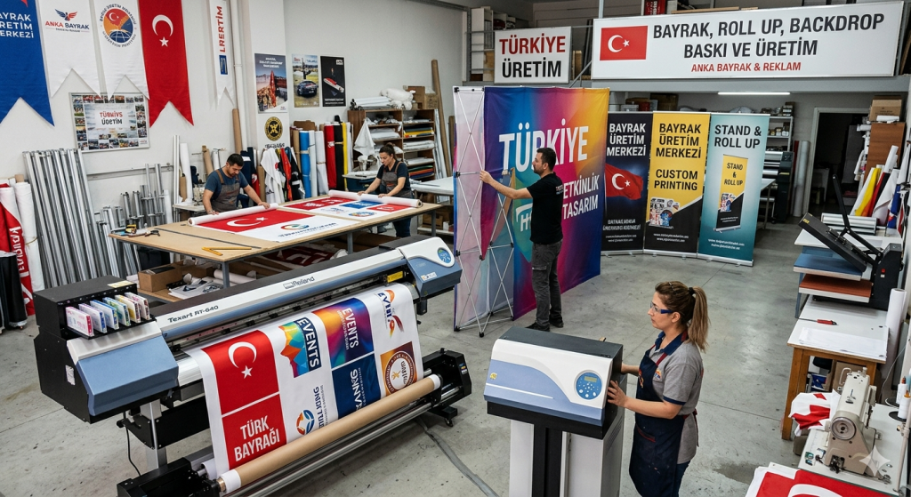 Baskılı Reklam Ürünleri. Bayrak – Roll Up – Bez Çanta – Örümcek Stant ve Arka Plan Backdrop Ürünleri Üretiyoruz. WhatsApp’dan Sipariş Vermek İçin Tıklayın.